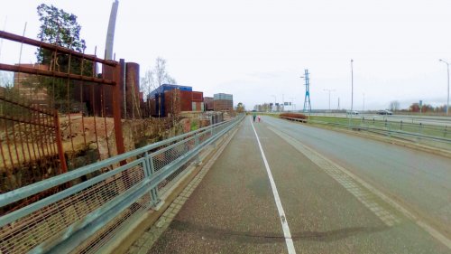 K-citymarketを超えて、工場のようなものが奥に見えてきます